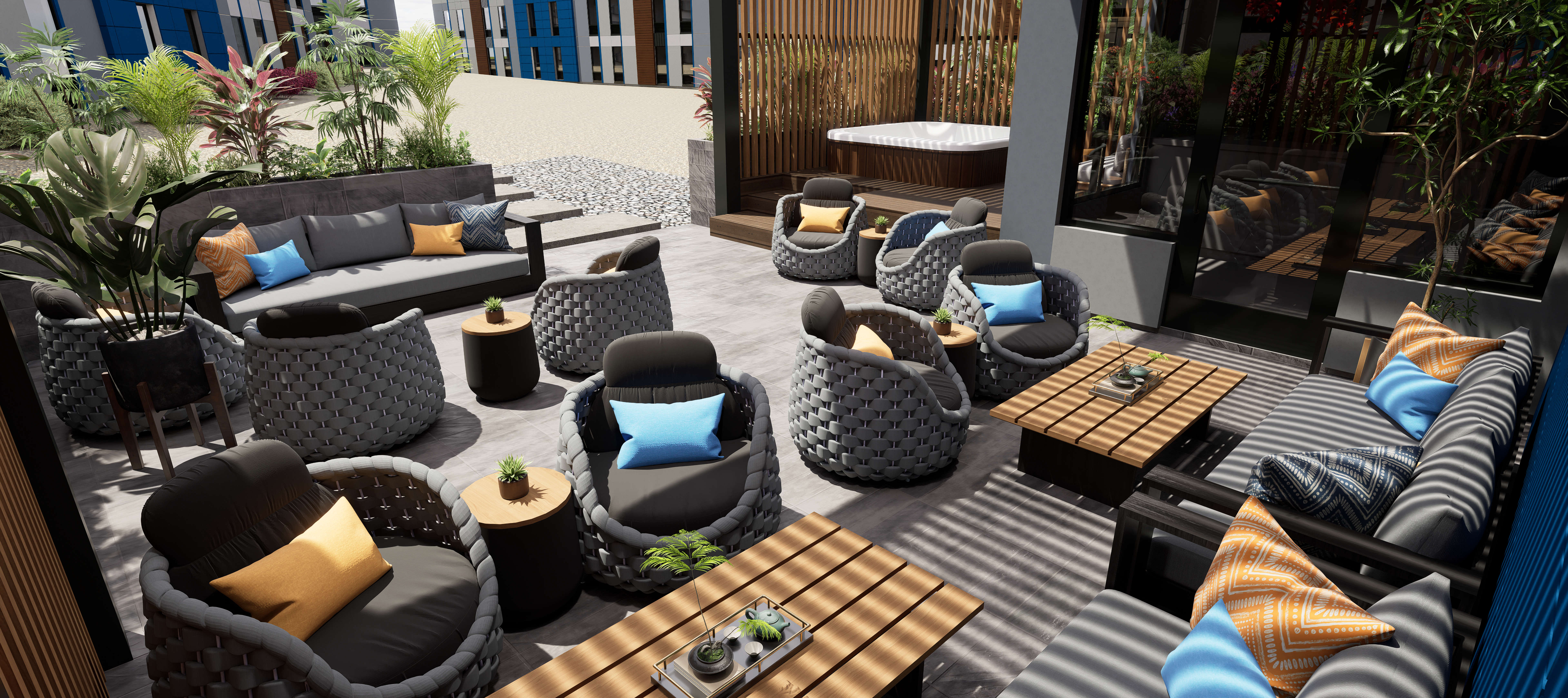Experience the heart of MYTri Suites where sophistication meets social connection. Our daringly modern clubhouse redefines communal living with state-of-the-art facilities designed for work, wellness, and unwinding.